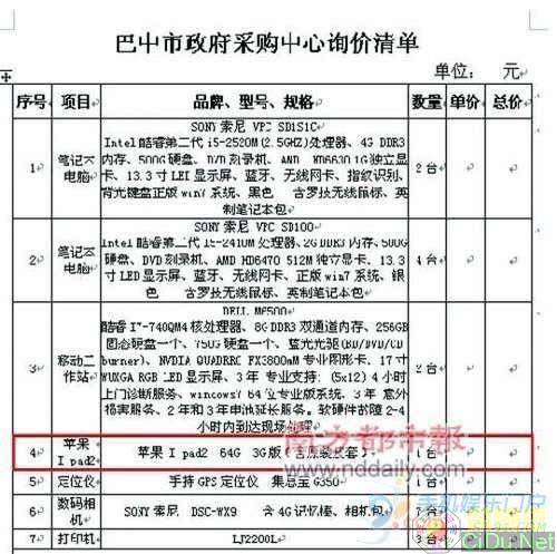 [图文]用于传输数据 四川政府竟采购水货iPad 2 |